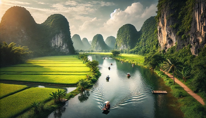 Gliding gently along the Sao Khe River, where still waters mirror clouds and limestone peaks, Trang An unfolds like a timeless symphony between nature and history. More than just beautiful landscapes, Trang An moves the soul with its rare serenity-where every breath carries the scent of fields and every view whispers stories of a thousand years.