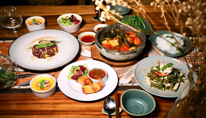 Hotels with on-site restaurants allow guests to enjoy a variety of Asian and Western dishes, along with local specialties such as goat meat, “chim to dan,” and crispy rice (com chay), without leaving the property.