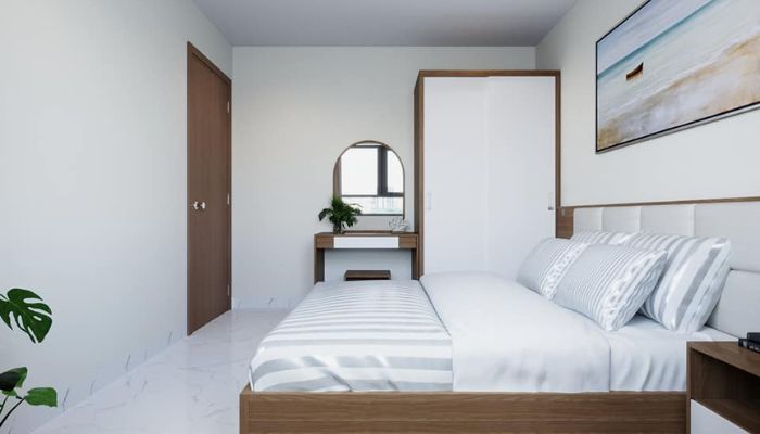 Bước qua cánh cửa, mùi hương dịu nhẹ thoảng trong không khí, sắc gỗ mộc mạc hòa với gam màu trang nhã khiến lòng người chậm lại. Hai phòng ngủ riêng biệt như hai ốc đảo nhỏ, giường phủ ga trắng tinh khôi, gối mềm nâng giấc ngủ say. Một ngày mệt nhoài khép lại bằng hơi ấm chăn bông và tiếng thở đều trong không gian tĩnh lặng.